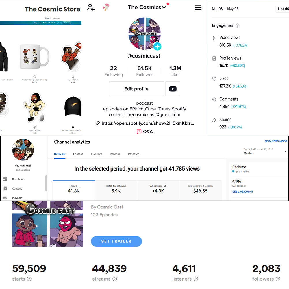 Throughout a year of accompanying The Cosmics in producing their podcast, these online personalities have gone from 113 TikTok followers to 60k+.